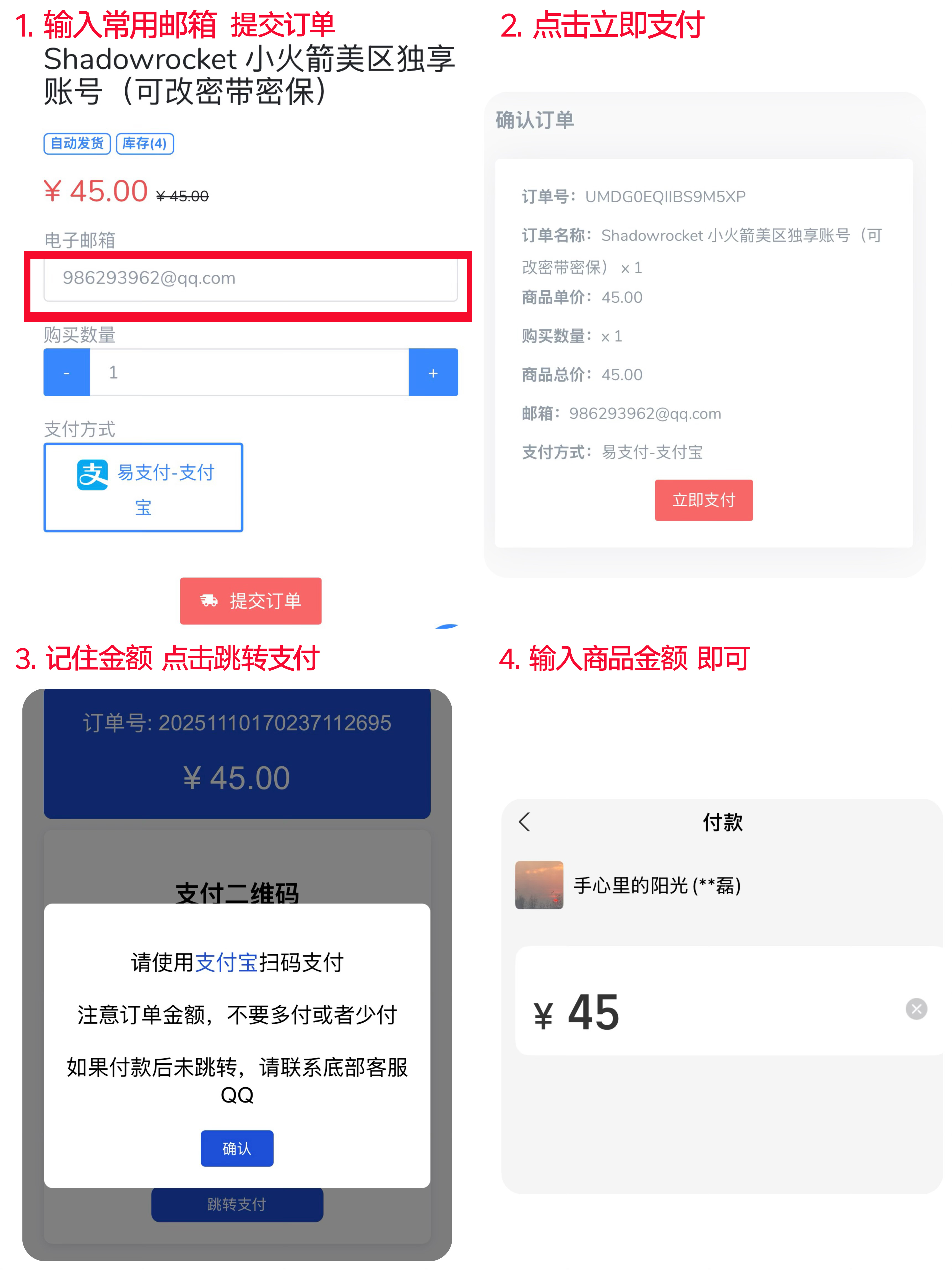 第一步:账号准备 (付款以后自动获取卡密-也可以点击网站 查询订单输入下单填写的邮箱查询)