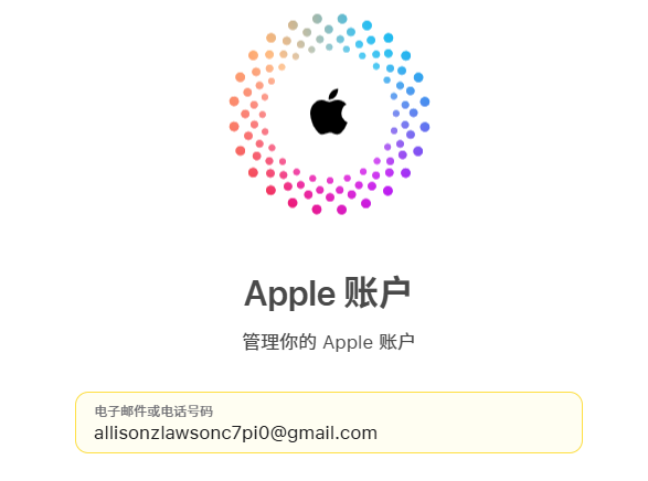在登录框输入你的 Apple ID(通常是邮箱,例如:example@gmail.com)。